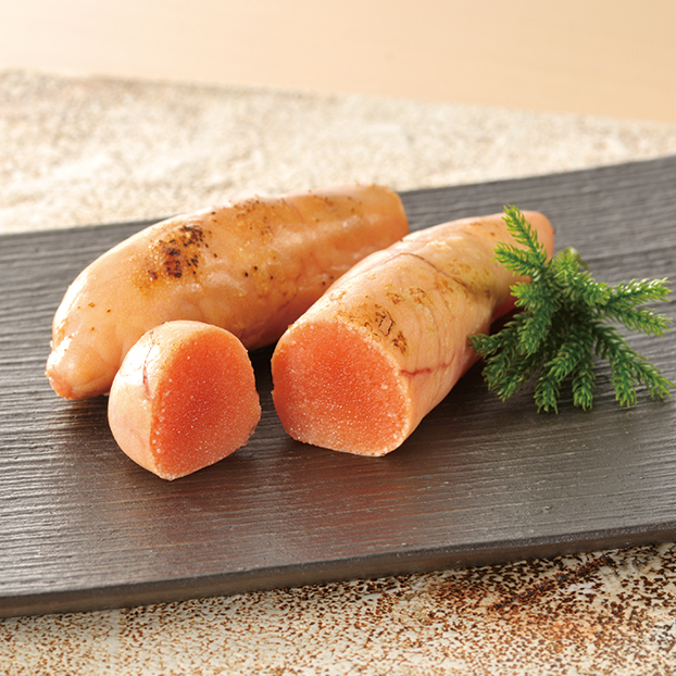 なめらかな舌ざわりと、生のまま漬け込んだ、たらこ本来の強い旨味が特長です。カネシメ松田水産 無着色たらこ(北海道虎杖浜産)