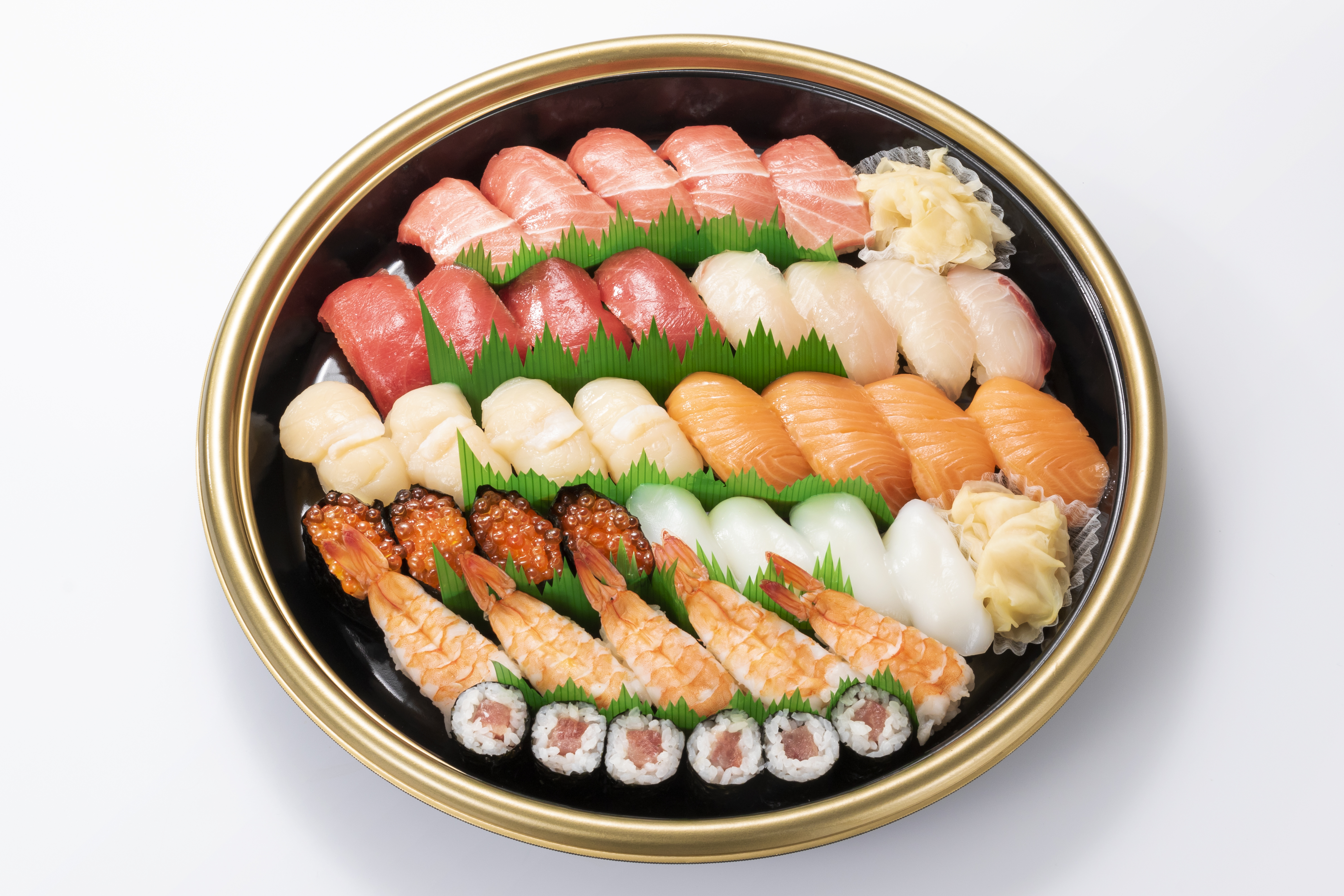 3~4人前 本鮪中トロ・本鮪赤身・かんぱち・ほたて・サーモン・いくら・いか・海老・鉄火巻 本鮪たっぷり、人気ネタを用意しました