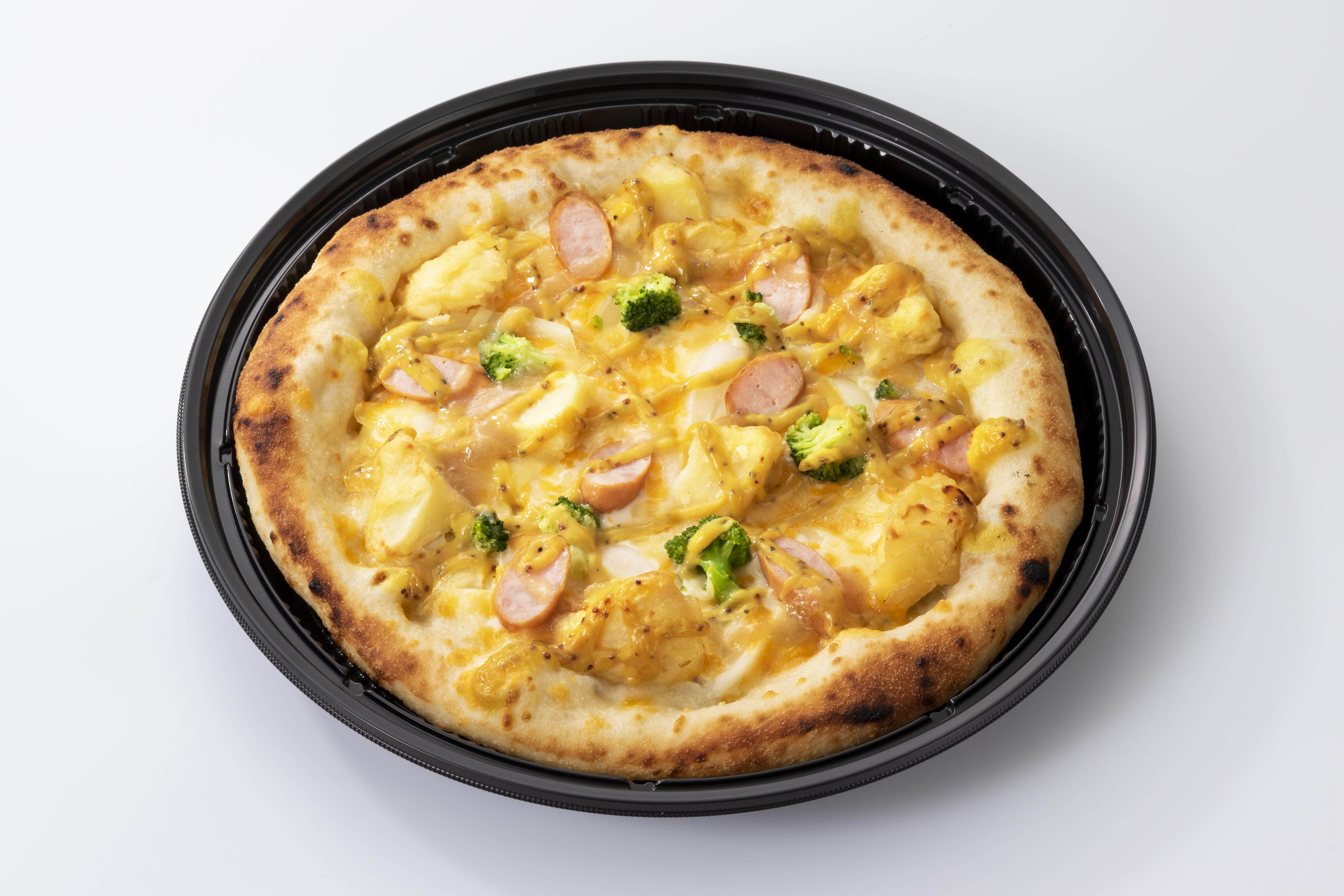 ガーリックソースが食欲をそそります。 ホワイトソースをベースに、ウインナーやブロッコリーもトッピング。 ポテトがホクホク美味しい! 直径約25センチ、6ピースとなります。