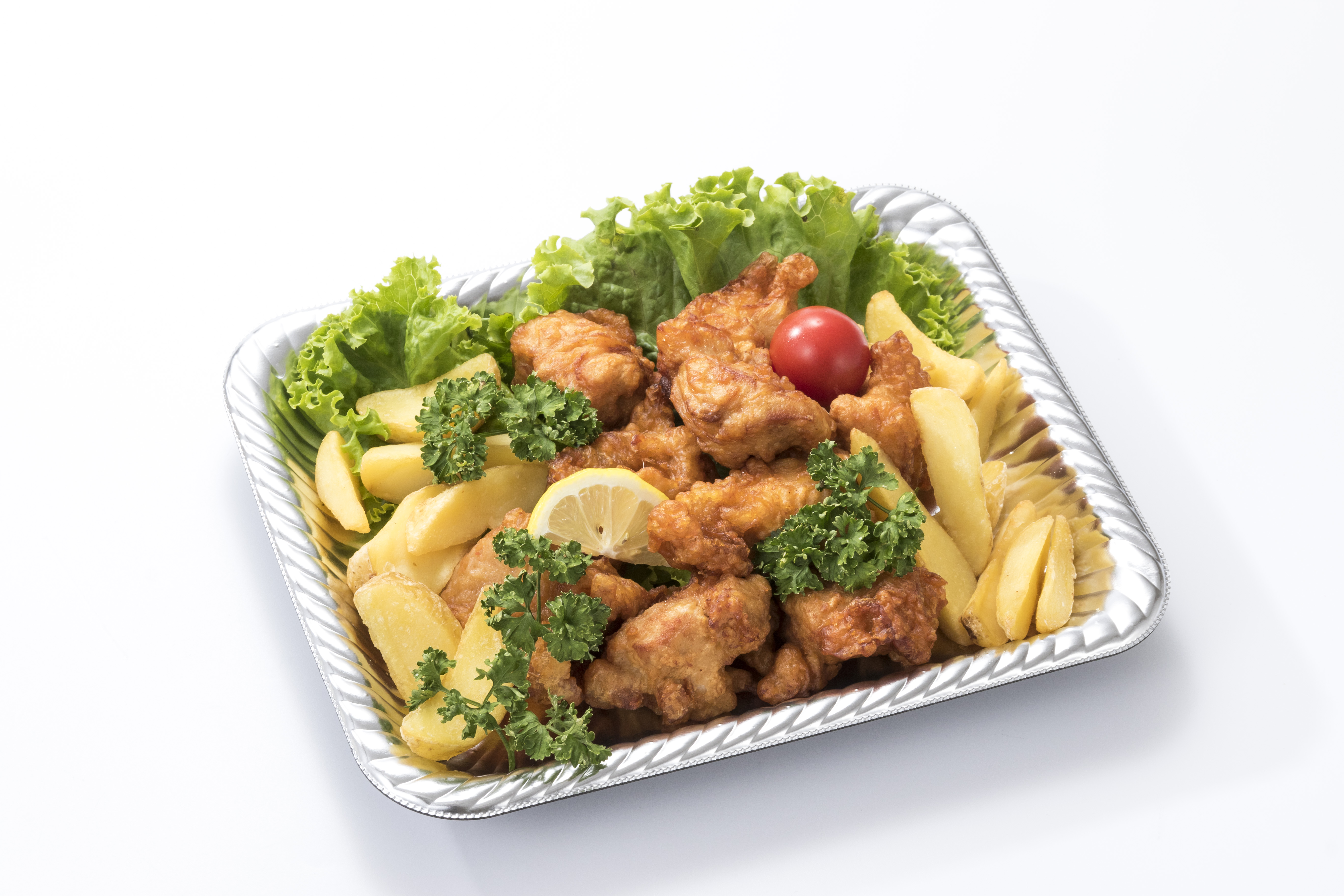 お子様大好き、から揚げとポテトフライのセットです。