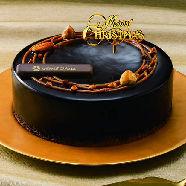 カカオ分の高いチョコレートを使用したショコラムース、 ヘーゼルナッツショコラシャンティ、キャラメルソースを重 ね、食感のアクセントにアーモンド、香りづけにコアント ローを使用した贅沢なショコラケーキです。