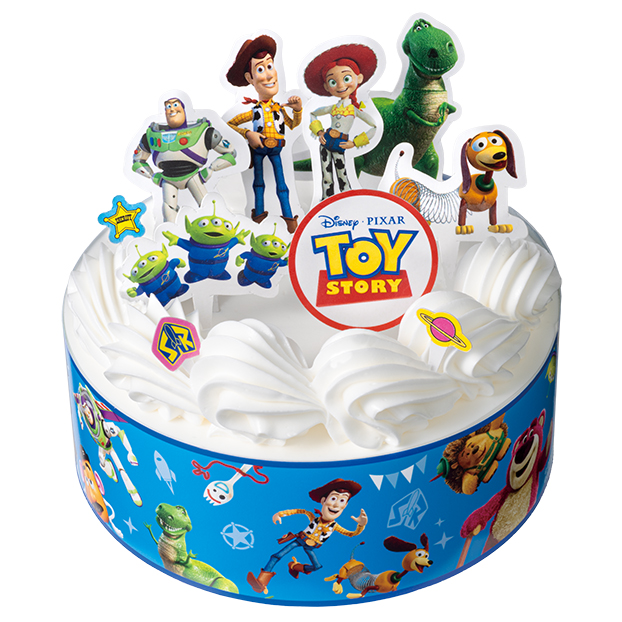 「トイストーリー」のキャラクターピックを自由に飾って楽しめるケーキです。