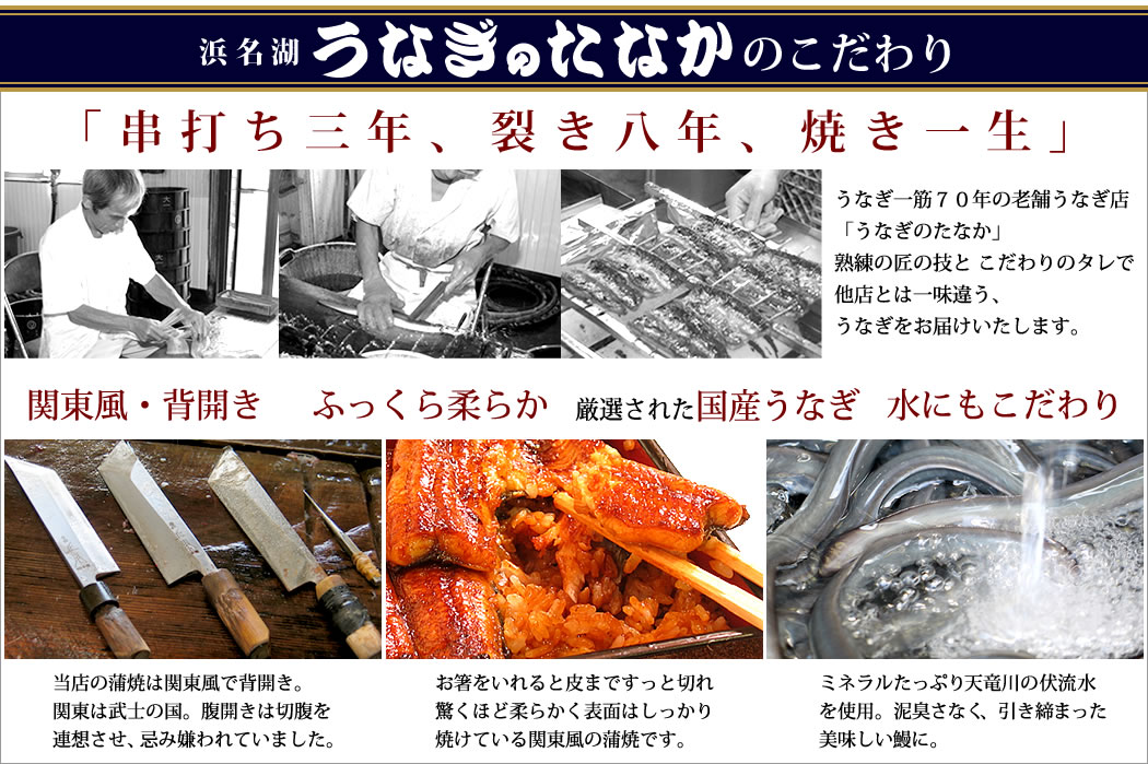 - 厳選された国産: 浜名湖をはじめとする国内産のうなぎのみを使用しています。