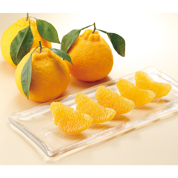 皮が薄いのでむきやすく、ほどよい甘さとすっきりとした酸味が特長、ポンと出たおでこがとっても可愛らしいフルーツです。大分産 ハウスデコポン(葉付き)